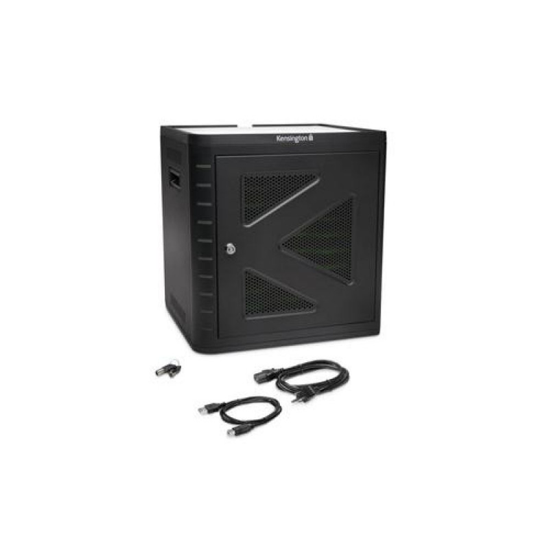 As more tablets are deployed into classrooms, businesses and retail spaces, providing a convenient and secure storage location is becoming a big need. Luckily, Kensington has the perfect answer with the new Charge & Sync Cabinet, Universal Tablet. With space for up to 10 tablets including iPads, Galaxy Tabs, Kindles and more, the cabinet is the perfect place to charge the tablets after everyone has gone home for the day so they’re powered up and ready in the morning. Plus, with adjustable drawers, each bay can accommodate tablets in a protective rugged case. Stack up to three cabinets and you’ve got storage for up to 30 tablets in one classroom. A tamper-resistant, retracting front door offers security with customized key access, and the included mounting plate or cable lock keeps the cabinet in place.<br><br>Holds up to 10 tablets for secured storage, charging and syncing<br>Spacing for each of the slots: 28 (H) x 242 (W) x 280 (D) mm<br>Stack up to 3 cabinets and sync up to 30 tablets with a separate USB hub<br>Adjustable shelves allows for tablets in their protective rugged cases<br>Can hold iPads, Galaxy Tabs, Kindles, and other iOS and Android devices<br>Secures to table with mounting plate or cable lock<br>Tamper-resistant, retracting door opens wide for easy access<br>Built-in cooling fan to avoid overheating charging tablets<br>Individual lock keys included. Master Access keys can be ordered.<br>Dimension on the Cabinet: 430 (H) x 400 (W) x 350 (D) mmKensington Charge & Sync Cabinet Universal Tablet. Type: Portable device management cabinet, Product colour: Black, Placement: Floor, Table. Supported portable devices: Tablet, Device connectors supported: USB, Lock type: Key. Current: 2.4 A. Width: 400 mm, Depth: 350 mm, Height: 430 mm