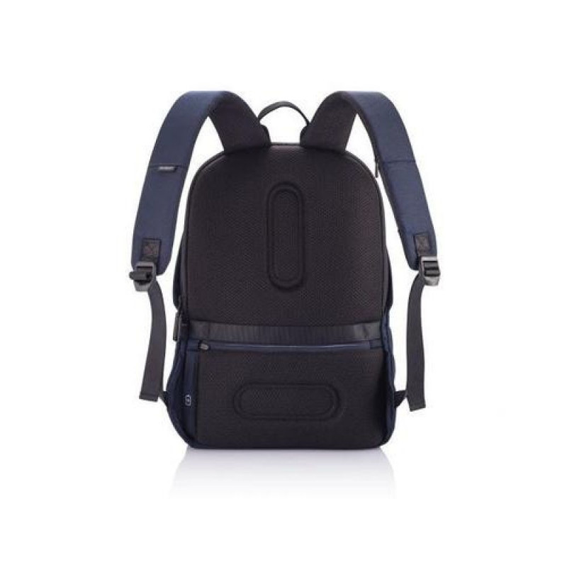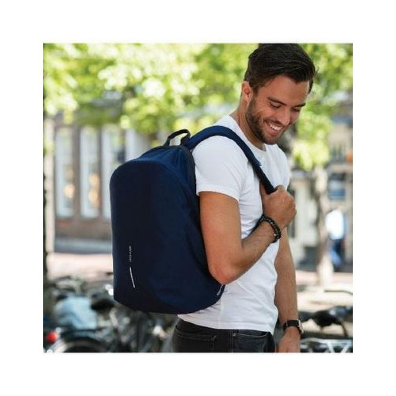 For university, school, work or your next trip, the Bobby Soft Backpack is ready! The iconic Bobby anti-theft design with hidden and RFID protected pockets, no front access and hidden zippers is now complemented with a safe zipper puller on the main compartment to keep you belongings even more secure. The spacious interior is convenient and versatile. In the main compartment, you can easily organize your gear with a padded 15.6" laptop compartment, notebook pocket, smart small pockets and a keychain clip. The top of the backpack is expandable giving additional space to store clothes, books or anything you need for your everyday use. This backpack is also equipped with an integrated USB charging port and made from water repellent material making it very functional. Made from recycled materials - reusing 37 old plastic bottles and saving 22L of water on every Bobby Soft Backpack. A soft backpack to fit every style.XD-Design Bobby Soft. Backpack type: Casual backpack, Product main colour: Navy, Material: Polyethylene terephthalate (PET). Width: 300 mm, Depth: 180 mm, Height: 450 mm