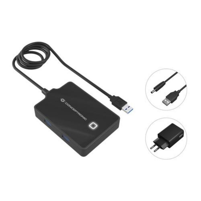 Conceptronic HUBBIES 4-Port USB 3.0 HUB with Power Adapter, 90cm cable