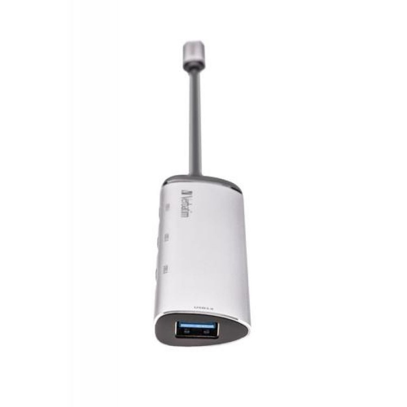 <b>Expand your potential</b><br>The USB-C™ Multiport Hub provides the ideal partner to latest slimline laptops and MacBooks. Additional accessories require additional ports which the latest laptops lack. This Multiport Hub provides four USB 3.2 Gen 1 Type-A ports to plug in all the extra accessories that are needed. Plug the Hub into the USB-C™ port on your laptop to immediately increase your working possibilities.<br><br><b>Space for accessories</b><br>Need your accessories? With four USB 3.2 Gen 1 ports, there is plenty of space to attach a mouse and USB Drive, a hard drive and external DVD writer. With speeds of up to 5Gbps*, the USB 3.2 Gen 1 ports allow you to setup your own personal workspace, wherever you may be at the time.<br><br>* Based on internal testing results. Performance may vary depending on host drive.<br><br><b>Portable convenience</b><br>This ultra-portable metal design makes this hub perfect for BYOD (Bring Your Own Device) applications at the office and when travelling.Verbatim USB-C Multiport Hub Four port USB 3.2 Gen 1. Host interface: USB 3.2 Gen 1 (3.1 Gen 1) Type-C, Hub interfaces: USB 3.2 Gen 1 (3.1 Gen 1) Type-A. Data transfer rate: 5000 Mbit/s, Product colour: Grey, Housing material: Aluminium, Plastic. Power supply type: USB, Input voltage: 5 V, Input current: 2.4 A. Windows operating systems supported: Windows 10, Windows 7, Windows 8, Mac operating systems supported: Mac OS X 10.10 Yosemite, Mac OS X 10.11 El Capitan, Mac OS X 10.12 Sierra, Mac OS X 10.13 High.... Width: 30 mm, Depth: 115 mm, Height: 15.3 mm