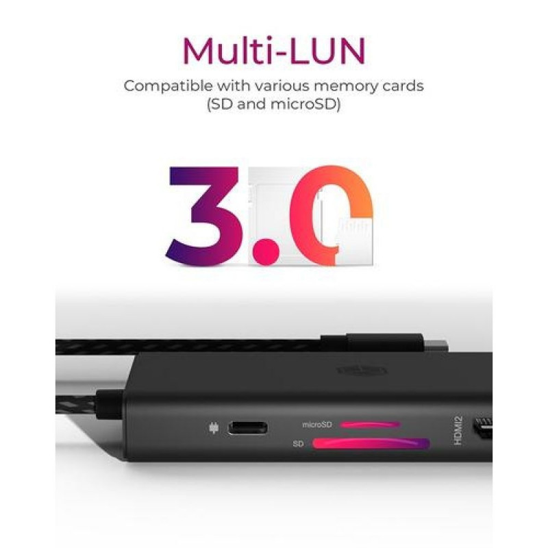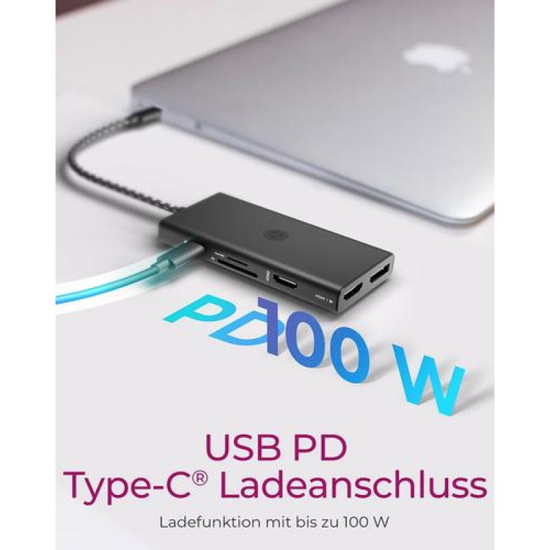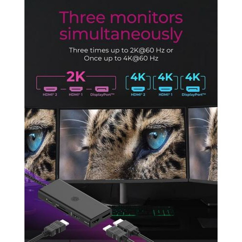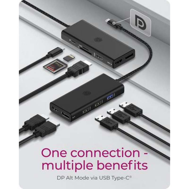<b>Video diversity despite compact design</b><br>Three monitors at the same time with up to 2K@60 Hz, your eyes will be grateful! If you want a higher resolution, then connect a single 4K@60 Hz monitor or beamer. Neither is a problem, as long as your host computer‘s graphics card supports it.<br><br><b>USB Type-C® - charging port required as of 2024</b><br>What do you do if the only Type-C® port on the notebook is occupied by the DockingStation and there is no further port for the Type-C® PD notebook power supply? No problem, simply use the Type-C® Power Delivery interface of the DockingStation. Then you can charge again with up to 100 watts.<br><br><b>Multiple is simple</b><br>The simultaneous use of external USB storage media and memory cards in SD and microSD formats is mandatory here, so that your creativity and productivity are not impaired by unnecessary plugging and unplugging of storage devices. Just dock it!ICY BOX IB-DK4011-CPD. Connectivity technology: Wired, Host interface: USB 3.2 Gen 1 (3.1 Gen 1) Type-C. Product colour: Black, Compatible memory cards: MicroSD (TransFlash), Housing material: Aluminium, Plastic. Width: 46 mm, Depth: 113 mm, Height: 16 mm. Quantity per pack: 1 pc(s), Package width: 25 mm, Package depth: 100 mm. Products per master (outer) case: 60 pc(s), Master (outer) case width: 280 mm, Master (outer) case length: 450 mm