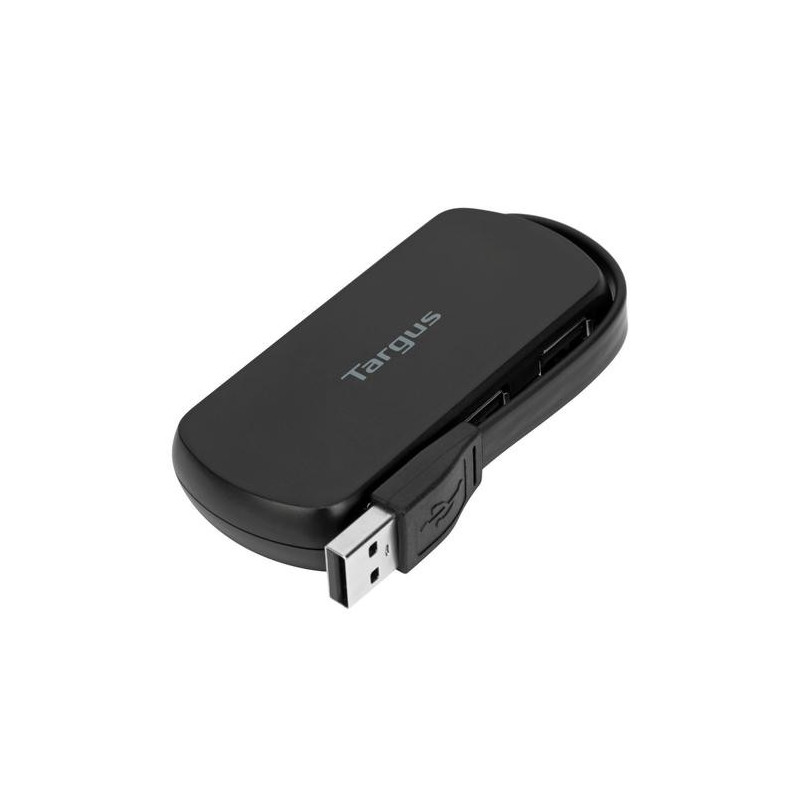 The Targus USB 2.0 4-Port hub allows connection of up to 4 USB Devices whilst on the move. Plug and Play functionality ensures this hub is simple and easy to use whilst the device draws power from the notebook ensuring a bulky AC adapter is not required on your travels. High speed USB 2.0 connectivity ensures fast and reliable data transfer of up to 480Mbps to a variety of devices such as mice, flash drives, and MP3 players, keyboards, USB adapters and Digital Cameras.<br><br>The attached USB cable prevents loss or damage to the cable while conveniently clipping to the base of the hub for easy transportation.<br><br>This lightweight travel hub is ideal for use at home or on the road and is compatible with both PC and Mac.Targus ACH114EU. Host interface: USB 2.0, Hub interfaces: USB 2.0. Data transfer rate: 480 Mbit/s, Product colour: Black, Housing material: Plastic. Windows operating systems supported: Windows 10, Windows 7, Windows 8, Windows Vista, Windows XP, Mac operating systems supported: Mac OS X 10.0 Cheetah, Mac OS X 10.1 Puma, Mac OS X 10.10 Yosemite, Mac OS X 10.11 El Capitan, Mac..., Compatible operating systems: Windows 10, 8, 7 XP/Vista, Mac OS 10. Width: 15 mm, Depth: 90 mm, Height: 45 mm. Quantity per pack: 1 pc(s), Package width: 53 mm, Package depth: 148 mm
