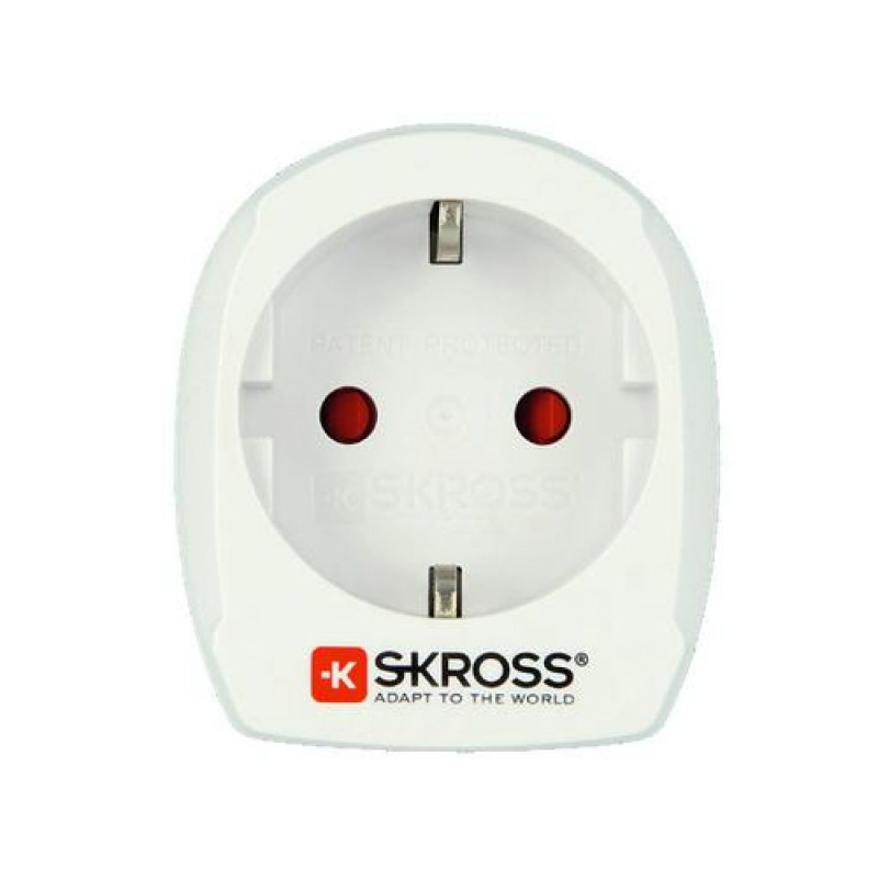 The US standard socket is used in more than 50 countries around the world. Our SKROSS® Country Adapter Europe to USA provides a reliable and easy connection for devices with a Schuko or Euro plug, safely enabling the use of power hungry devices such as laptops and hairdryers.Skross 1.500203-E. Plug connector type: Type B, Socket connector type: Universal, Universal socket connector types: Type C, Type F. Width: 53 mm, Depth: 63 mm, Height: 60 mm. Package width: 65 mm, Package depth: 58 mm, Package height: 81 mm