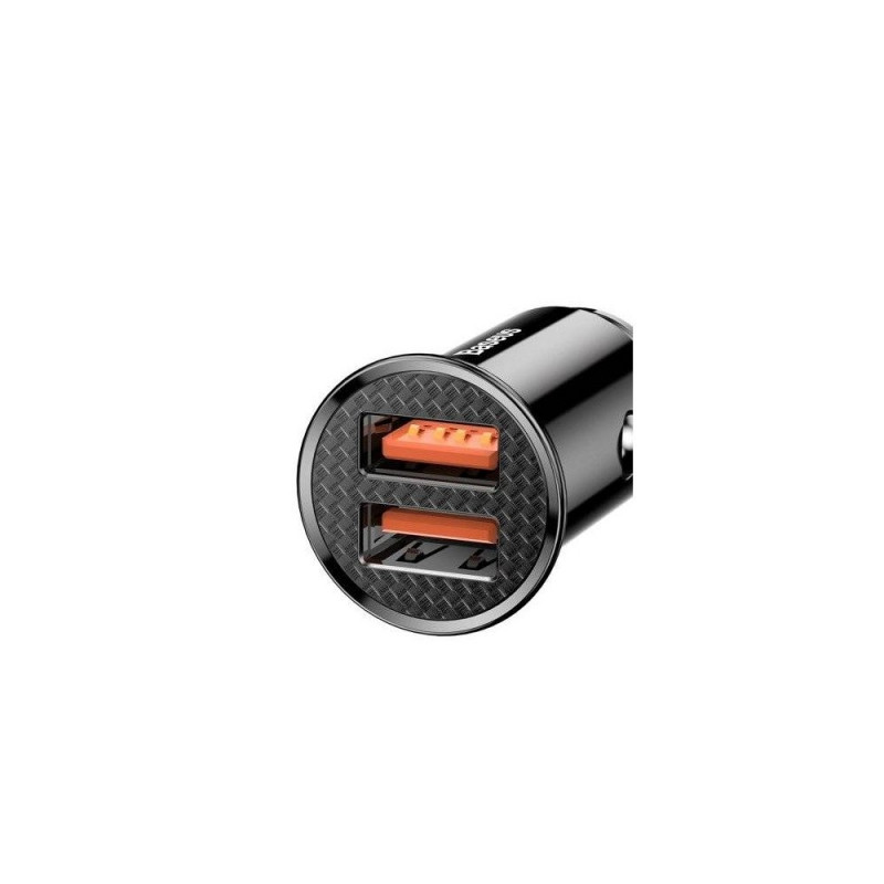 Baseus Circular is a fast car charger that supports many standards of quick charging. The device supports such quick charging technologies as QC 3.0/2.0, Huawei SCP, Samsung AFC, MTK PE+. Due to the high power of 30 W the charger will always have enough energy to quickly recharge the connected device. Classic design and small size means that the charger will fit into the interior of any car. Two ports allow you to charge two devices at the same time, and the intelligent system always selects the ideal voltage and current for the device being charged. The LED backlighting enables comfortable use of the charger at night.