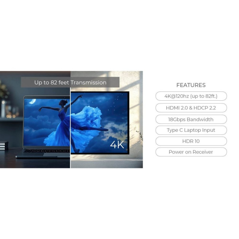 PremiumCord USB-C to HDMI extender via patch cable Cat5e/6/6a 4K@60Hz on 60m The most advanced chipset, it enables the transmission of 4k@60Hz USB-C video signals at a distance of up to 60 meters and 4k@120Hz signals at a distance of up to 30 meters. Supports HDR10. The device allows a high-resolution audio and video signal to be transmitted over one network cable without delay and displayed on an HDMI monitor or projector at a distance of 60m. - The assembly consists of a TX transmitter and a RX receiver, which are connected by a high-quality patch cable Cat5e/6/6a. Transmitter with USB-C connector displays a high-quality image on an HDMI projector, monitor at a long distance. - USB-C or Thunderbolt 3 input connector from computer, laptop or mobile phone, the USB-C connector is equipped with a short cable to avoid breaking the USB-C connector - Supports 4K@60Hz at 60m and 4K@120Hz at 30m and FULL HD 1080p up to 60m when using a quality CAT6 UTP cable with AWG23 copper conductors - For connection, we recommend a quality UTP cable Cat5e,Cat6,Cat7 with copper conductors, preferably AWG23, it does not have to be shielded - Resolution: 1280x720, 1280x960, 1366x768, 1440x900, 1680x1050, 1920x1080, 1920x1200, 720p@50/60Hz, 1080i@50/60Hz, 1080p@24/25/30/5 0/60/120Hz, 2560x1440@50/60/120 /144Hz, 3840x2160@24/25/30/50/60/100/120Hz, 4096x2160@24/25/30/50/60Hz - Transmission data rate: 10.2Gbps - Supports HDR10 - Compatible with HDMI2.0 - Supports HDCP2.2, HDCP1.4 - Supports Audio formats LPCM, DTS-HD, DTS-Audio, Dolby Digital 5.1CH, Dolby Atmos - The transmitter and receiver are connected to each other with a high-quality CAT6/CAT5e cable. Both units have an RJ45 connection connector - The transmitter is powered from a USB-C connector and the receiver has a micro USB connector for power, the set includes one USB micro cable for connecting to USB on a computer or to a USB adapter - Working temperature: 0-60°C - Dimensions: 67mm x 38mm x 21mm - Weight: TX 85g, RX 72g In the package: 1x Transmitter unit 1x Receiver unit 1x manual 1x micro USB 5V power cable
