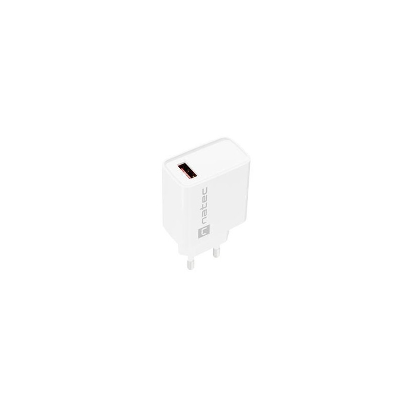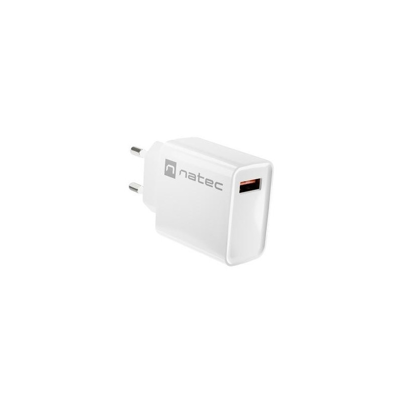 Opt for the versatile wall charger, with which you can effortlessly charge not only your smartphone but also other accessories.<br><br><b>Charging? With Natec Ribera, it's even simpler</b><br>Opt for the versatile Natec Ribera wall charger, with which you can effortlessly charge not only your smartphone but also other accessories. Save time with compatibility with fast charging standards, automatic adjustment of energy replenishment parameters, and safeguards that will protect your devices from malfunctions.<br><br><b>Save time with fast charging</b><br>Tired of slow energy replenishment and want your devices to charge much faster? With Natec Ribera, it's possible. We've equipped our charger with a USB Type-A port compatible with fast charging standards such as Quick Charge 3.0, Samsung AFC, and Huawei FCP / SCP. When combined with a maximum power of 18 W, this provides exceptional results and significant time savings compared to conventional solutions.<br><br><b>Intelligent communication with devices</b><br>Smart charging is an integral part of Natec Ribera. It automatically adjusts the optimal settings for the connected devices. All of this is done to ensure it doesn't have a negative impact on the condition of your electronics and to deliver energy safely, allowing you to enjoy your devices for even longer.<br><br><b>Safety above all else</b><br>We understand how important safety is. Natec Ribera prioritizes it in every aspect. Built-in protections guard against excessive voltage and current (OVP and OCP), short circuit (SCP), and even overheating (OTP).<br><br><b>Classic design</b><br>At home, in the office, at a meeting – no matter where you are, the classic design of Natec Ribera allows you to charge your device without drawing attention to itself. Moreover, its compact dimensions (83 x 43 x 27 mm) and low weight (53 g) will enable you to take it with you on every journey.NATEC RIBERA. Charger type: Indoor, Power source type: AC, Charger compatibility: Universal. Input voltage: 100 - 240 V, Maximum output voltage: 12 V, AC adapter output current: 3 A. Fast charging. Product colour: White