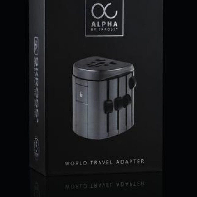 Alpha by SKROSS® – Design by Jacob Jensen<br>Our first Design Travel Adapter combines a contemporary, elegant design with state-of-the-art components. Where Swiss Engineering meets Danish Design!<br><br>Scandinavian Design<br>With its pure, elegant design, Alpha by SKROSS® is a must-have for today’s stylish traveller. Designed by the Danish design agency, Jacob Jensen Design, the adapter is characterised by stylish minimalism using the clean design language that the Scandinavian designer is known and recognised for.<br><br>Infinite Possibilities<br>The adapter can be used even with powerful devices such as laptops and hairdryers. It is also compatible with 7 international socket standards (Europe, Australia / China, UK, USA, Switzerland, Italy, Brazil) and can be used by international travellers in more than 205 destinations worldwide.<br><br>Highest Quality & Safety<br>As the most powerful world travel adapter in the current SKROSS® range, this adapter truly lives up to its name. It has gone through rigorous testing and certifications to ensure that it meets the very highest quality standards. Ground-breaking technologies and exclusively designed and patented safety features, including a triple safety mechanism, give full peace of mind when travelling the world. <br><br>The Story Behind<br>The affiliation with Jacob Jensen Design has taken SKROSS® and its most famous category of world travel adapters to the next level. The Alpha by SKROSS® reflects the values that both premium brands stand for: Swiss precision and highest quality standards combined with the aesthetic efficiency and forward thinking of Scandinavian design tradition. <br><br>Jacob Jensen († 2015) was among the last great Danish designers belonging to the Danish golden era of the 1950s. As the founder of the Jacob Jensen Design agency, he is particularly well known for the ground-breaking design language that he developed for Bang & Olufsen, where the new design transformed the company from a Danish quality brand to an international icon. Both Jacob, and later his son Timothy Jacob Jensen, also designed products for a wide range of other clients, all characterised by stylish minimalism and the same pure + perfect + enduring design language. <br><br>The logo for the Alpha by SKROSS® reflects an alpha sign incorporated into an open infinity symbol, taking inspiration from the adapter's unlimited possibilities and durability.Skross Alpha. Plug connector type: Universal, Socket connector type: Universal, Universal plug connector types: Type B, Type C (Europlug), Type G (UK), Type I (AU), Type J (CH), Type L (IT), Type N (BR). Width: 71 mm, Depth: 59 mm, Height: 72 mm. Package width: 138 mm, Package depth: 214 mm, Package height: 85 mm