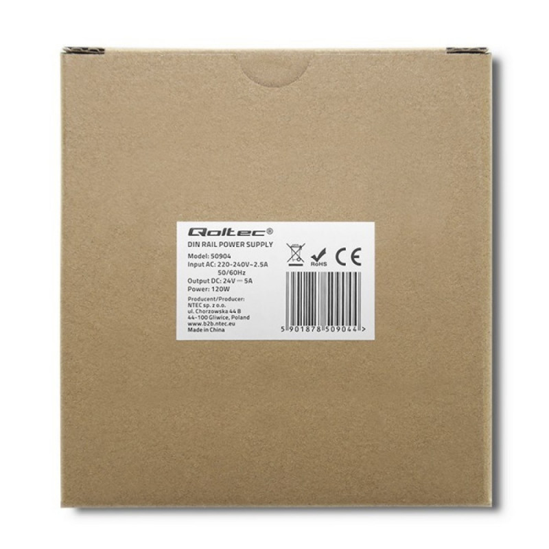 Qoltec 50904 tööstuslik DIN-siin toiteplokk 120W 24V 5A