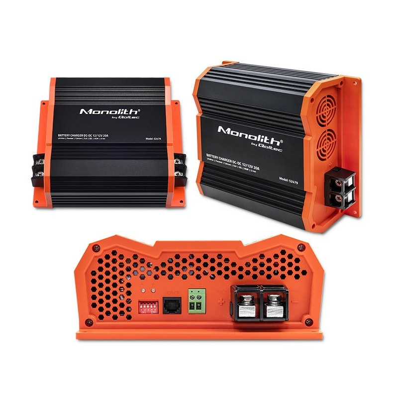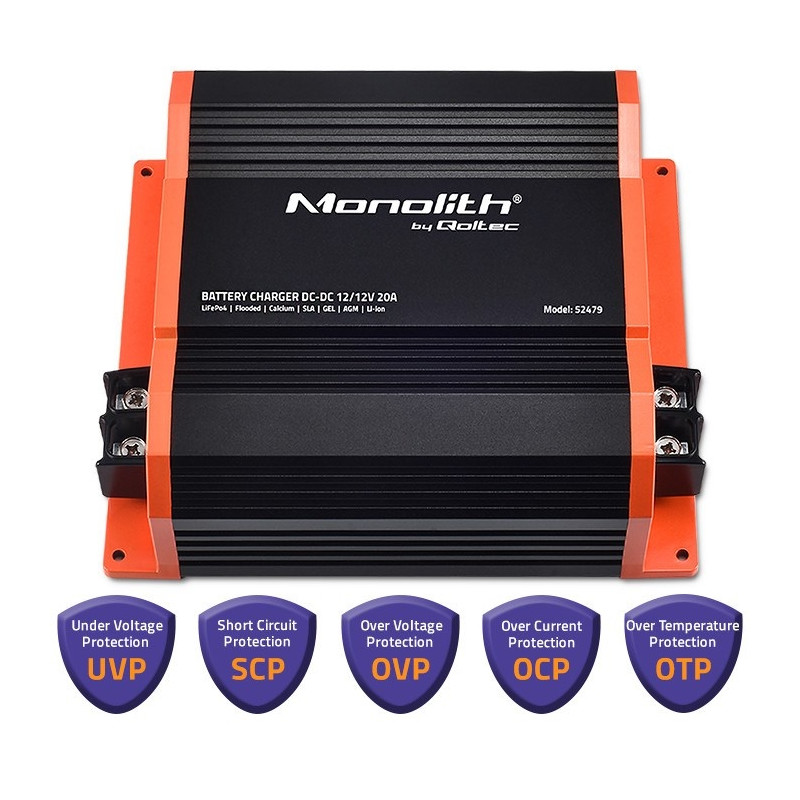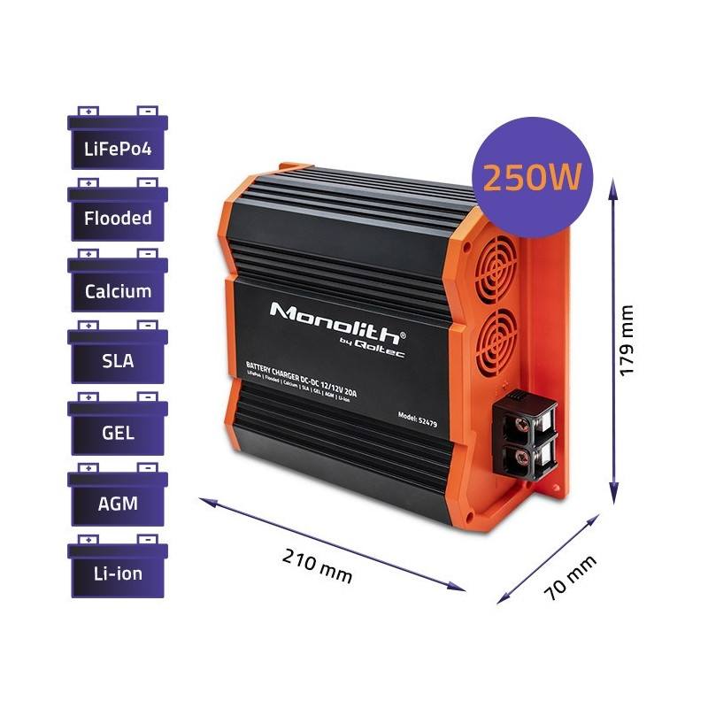 Qoltec 52479 Monolith DC-DC laadija LiFePO4 AGM 12V akudele | 20A | 250W