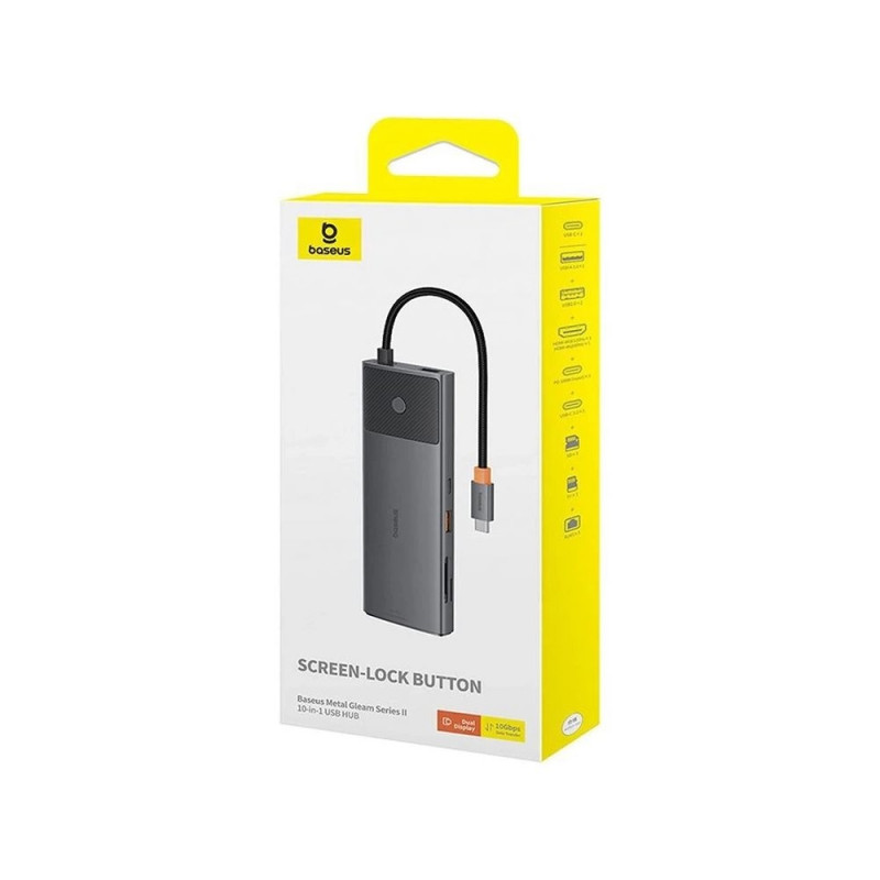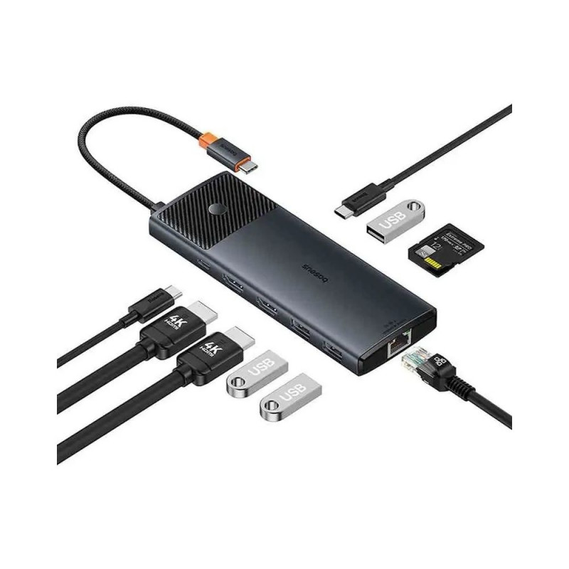 Adapter Hub 10in1 Baseus USB-C - 2xHDMI, 3xUSB-A, USB-C, RJ45, SD/TF, PD (black)