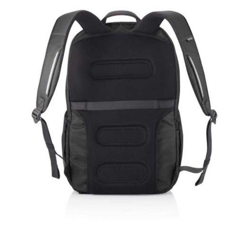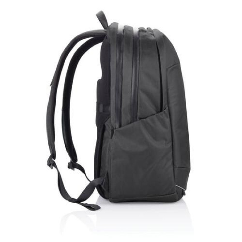 Ready to unplug and explore? With the Bobby Explore, you go from daily commuting to a weekend trip with the same backpack. Durable and weather resistant, this backpack takes safety and comfort to the next level. Your professional belongings are protected with hidden and water repellent zippers, a padded laptop pocket and an interior RFID safety pocket. The padded back panel and adjustable chest strap enhance breathability and improve posture, relieving the weight from your shoulders. Store everything you need with the expandable front pocket and an additional shoe pocket that can also be used for dirty and wet clothes. In addition, you can find an integrated USB charging port, a cool magnetic zipper puller, a quick access top pocket and external bottle pockets. Bobby Explore is made with recycled materials and Aware™ technology. Each Bobby Explore reuses 91 plastic bottles and saves 54 litres of water in the production process.<br><br><b>TOP 5 FACTS</b><br><br><b>ANTI-THEFT.<br></b>No front access, hidden pockets, and a semi-lock magnetic zipper puller on the main compartment.<br><br><b>EXPANDABLE FRONT POCKET.</b><br>Store everything you need and expand the backpack capacity from<br>27 – 30 L.<br><br><b>WATER REPELLENT.</b><br>Superior water repellence level on the front and side: level 4+ (scale 0-5) Water repellent YKK zippers on main pockets.<br><br><b>SMART ORGANISATION.</b><br>Main pocket with padded protection for laptop and tablet, front pocket for clothes, expandable bottom shoes compartment, water bottle pocket and functional internal pockets.<br><br><b>RECYCLED MATERIALS.</b><br>Made from certified rPET and AWARE™ technology – traceable recycled materials.XD-Design Bobby Explore. Backpack type: Travel backpack, Product main colour: Black, Material: Polyethylene terephthalate (PET). Width: 200 mm, Depth: 520 mm, Height: 330 mm