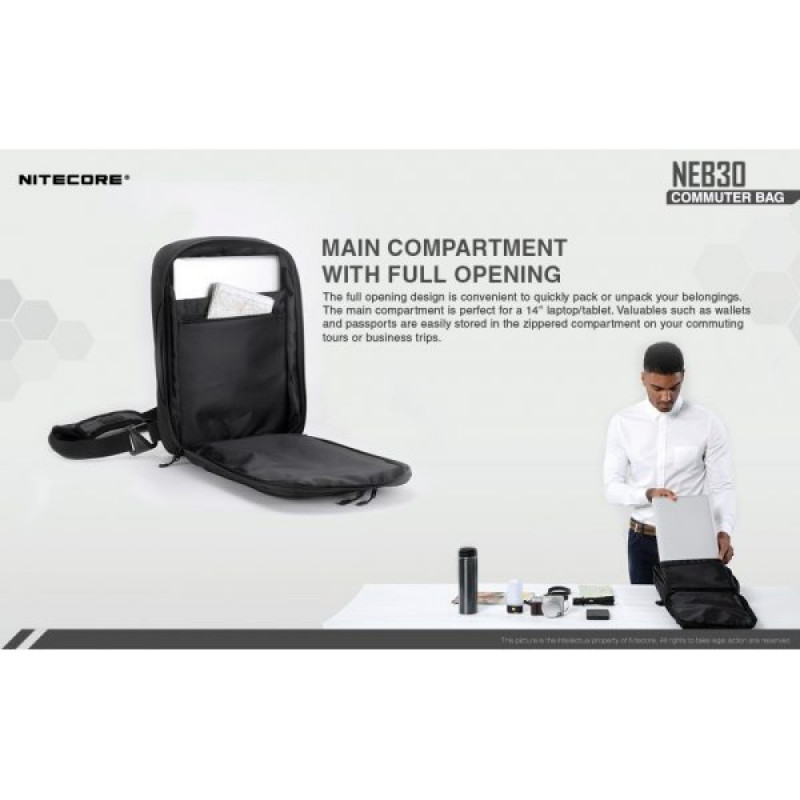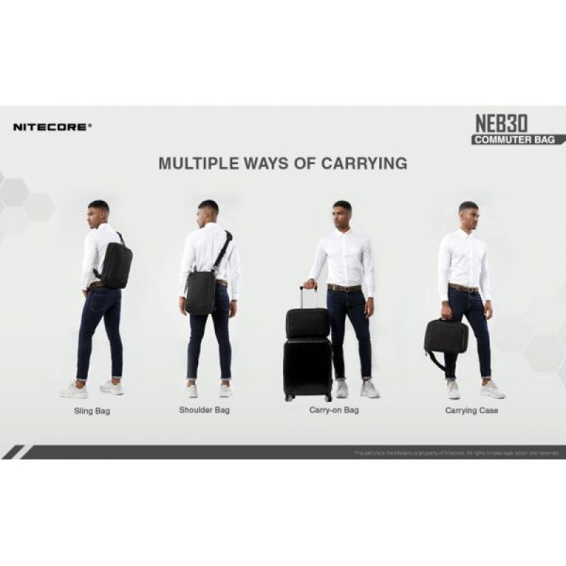 Nitecore NEB30 Commuter Bag Nitecore NEB30 Commuter Bag pakub mitmeid kandmisvõimalusi. Kotil on varustatud klambriga. Saate seda kanda õlakotina, õlakotina, kandekotina või käsipagasina. Peasahtel avaneb täielikult ja on mõeldud kiireks juurdepääsukToode on arhiivis, kuvatakse vaid informatiivsel eesmärgil.