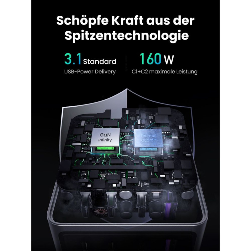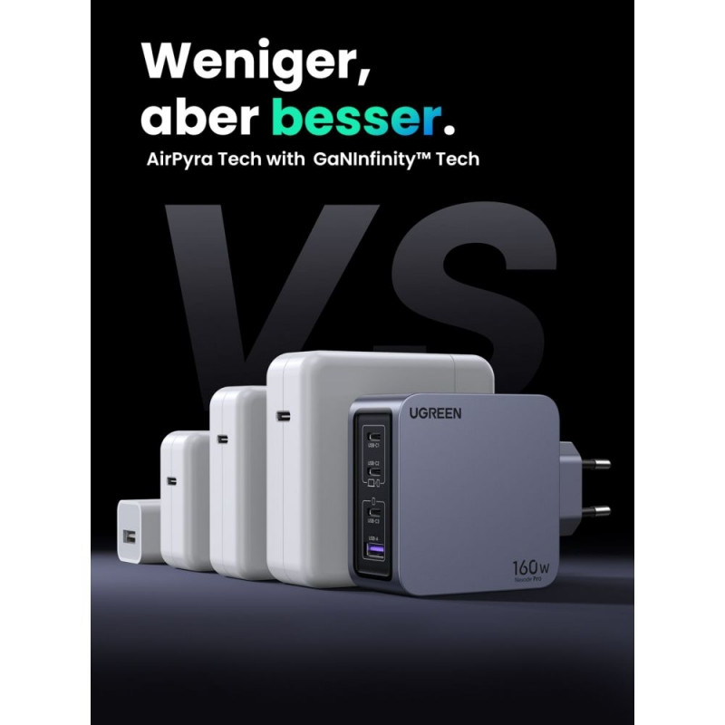 4-ühes 160W nutikas laadimine: Lae korraga kiiresti 4 seadet, kasutades intelligentset voolujaotust.