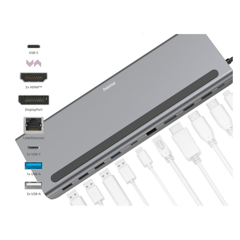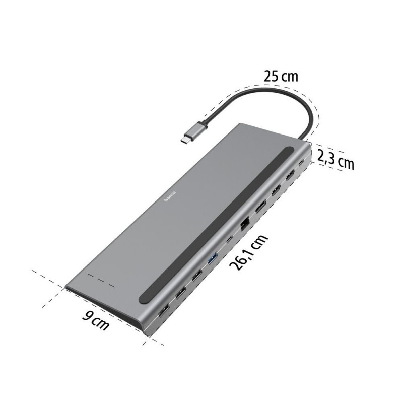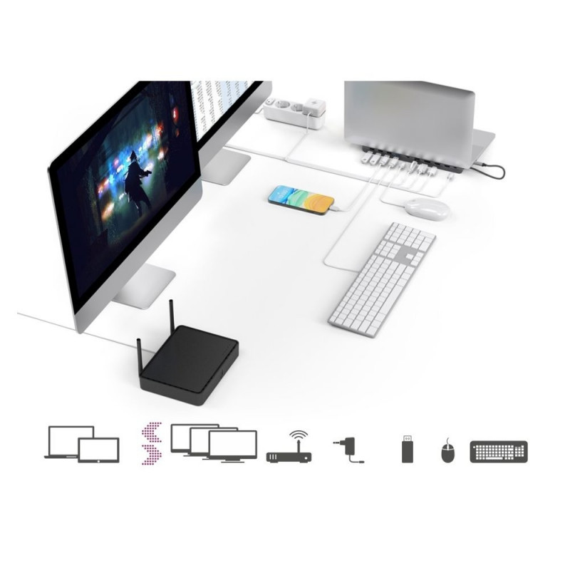 See USB-C jaotur sisaldab lausa 10 ühenduskohta. See on eriti kasulik, kui pistikupesasid pole piisavalt või nende arvu on vaja suurendada mitte ainult arvutis, vaid ka sülearvutis või tahvelarvutis. See töötab hästi, kui saad ühe pistikuga ühendada palju seadmeid. Jaotur sisaldab: 4 x USB-A, 1 x USB-C andmeside, 1 x USB-C toide, 2 x HDMI, 1 x DisplayPort, 1 x LAN/Ethernet.