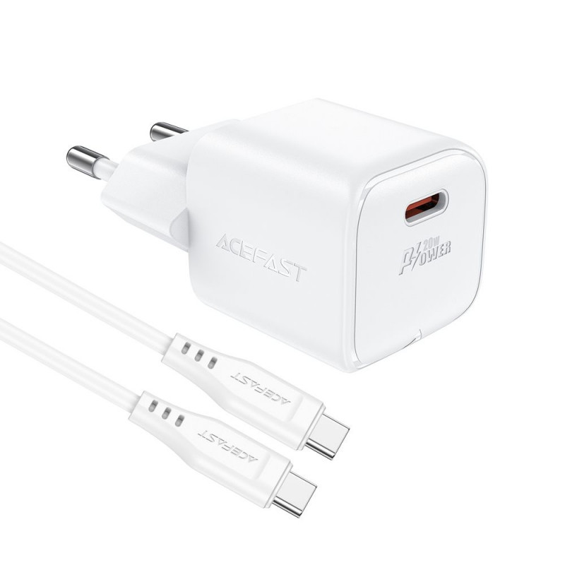 Acefast A73 Mini PD 20W GaN wall charger + USB-C cable - white