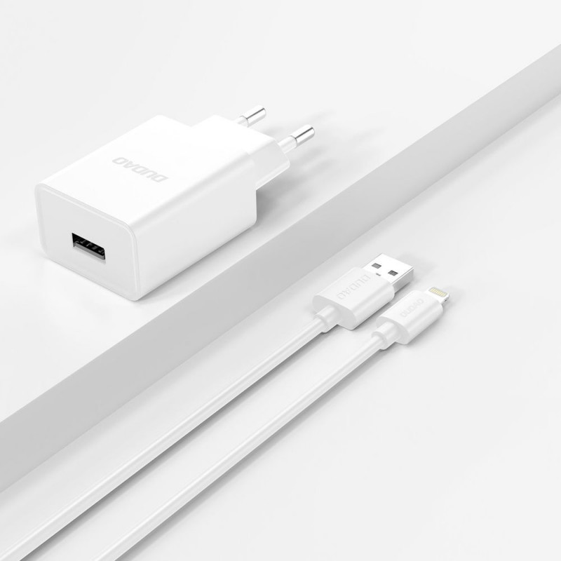 Dudao A4EU USB-A 2.1A wall charger - white + USB-A - Lightning cable