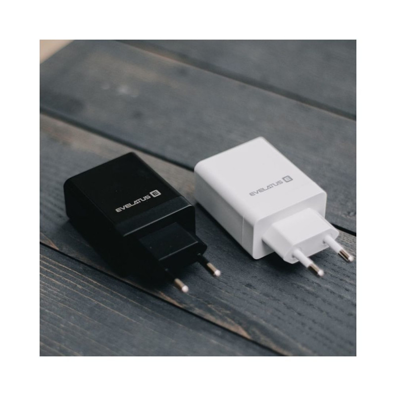 Evelatus ETC06 Premium 32W Adaptive 3 Port 5V-12V 2x USB / USB-C Reisi Laadija Valge