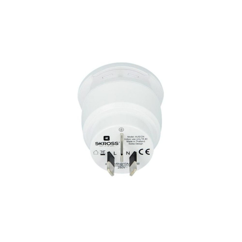 <b>Combo World to Australia/China</b><br><br>This travel adapter ensures getting connected is easier than ever, not just in Australia and China but also in all other countries with Schuko standard sockets (as predominantly found in Europe). Our SKROSS Combo World to Australia/China adapter provides global travellers with a safe, reliable and easy connection in all countries with the Australian, Chinese and Schuko standard, making it an ideal solution for business and leisure travellers.Skross 1.500210-E. Plug connector type: Type F, Socket connector type: Universal, Universal plug connector types: Type I (AU). Width: 58 mm, Depth: 60 mm, Height: 60 mm. Package width: 65 mm, Package depth: 58 mm, Package height: 81 mm. Products per master (outer) case: 50 pc(s), Master (outer) case width: 310 mm, Master (outer) case length: 185 mm