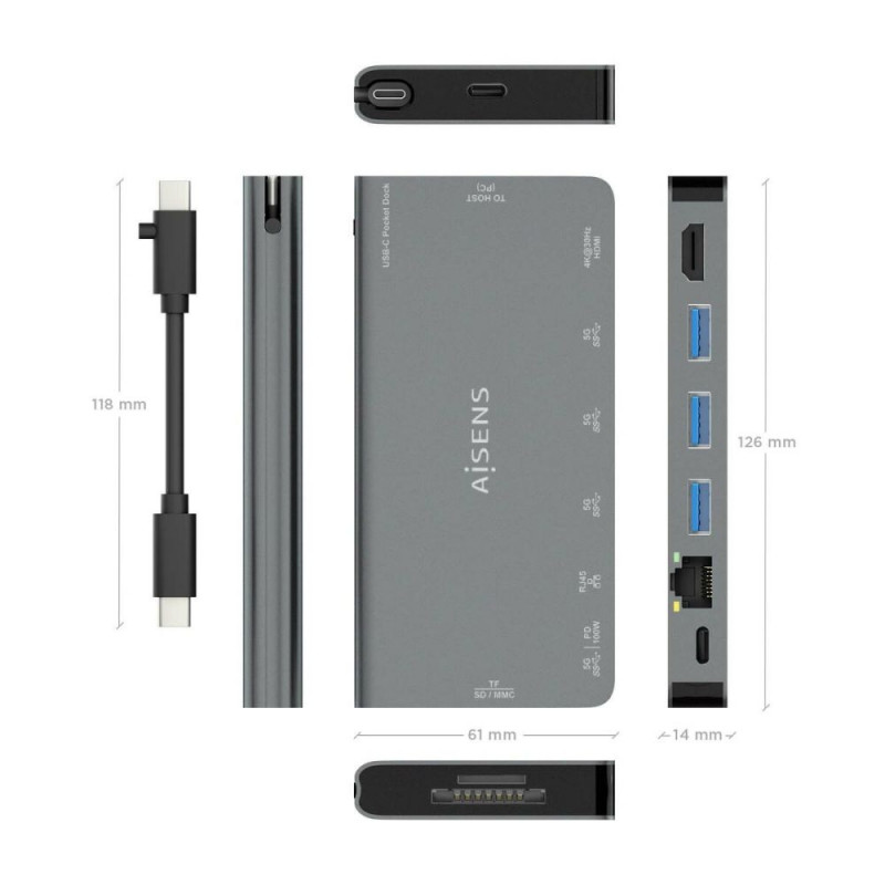 USB-jaotur Aisens ASUC-8P015-GR Hall (1 Ühikut)
