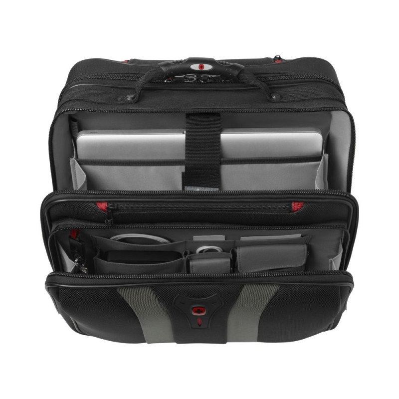 Wenger Granada sülearvutikohver on varustatud spetsiaalse polsterdatud sülearvutisahtliga, mis mahutab kuni 17-tollise ekraaniga sülearvuteid. Lisaks on kotil mitmeid erinevaid taskuid ja sektsioone, kuhu saab paigutada dokumente, laadijaid, mobiiltelefone, kirjutusvahendeid ja muid tarvikuid. Kohvri esiküljel on kiirelt ligipääsetav lukuga tasku, mis sobib ideaalselt väiksemate esemete hoidmiseks.