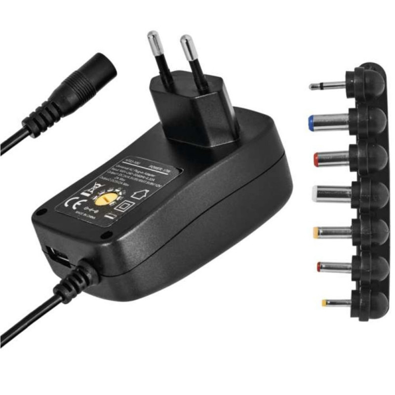 Color: Black Cable Length: 1.5 m LED Indicators: Yes Power Supply Type: Cable + set of DC connectors + USB output Electrical Specifications Input Voltage: 100–240 V~ 50/60 Hz Maximum Output Total: 5 V / 2.0 A / 10 W Output Specifications Output VoltaOsta kohe, viimased eksemplarid laos!