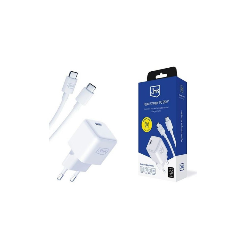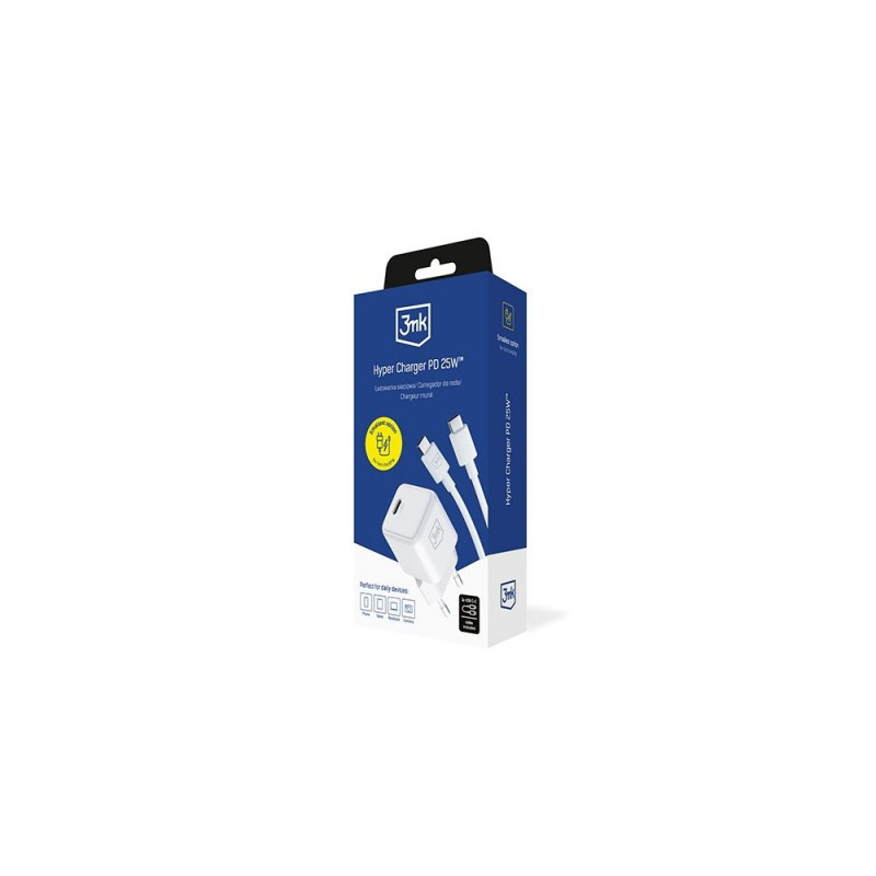 3MK Hyper Charger PD 25W seinalaadija valge + 1x USB-C kaabel