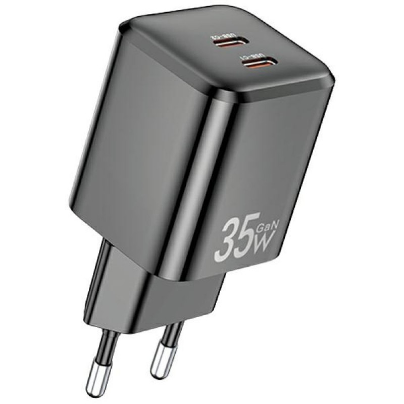 AWEI PD65-EU 35W2x USB-C must GaN laadija