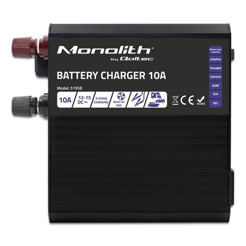 Qoltec 51958 nutikas Monolith laadija LiFePO4, AGM, GEL, SLA akudele | 10A | 12V