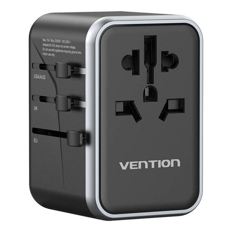 Vention FJFB0 GaN 2xUSB-C 2xUSB-A Universal Travel Adapter 65W (black)
