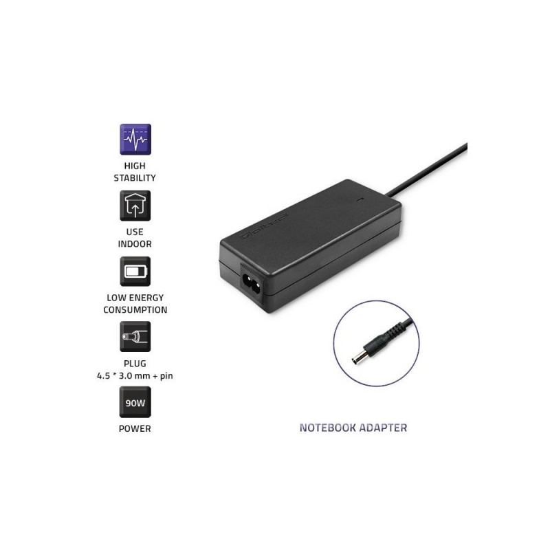 The Qoltec 51516.90W Power adapter has an output power of 90 W and an output voltage of 19.5 V, with a maximum output current of 4.62 A. It features advanced protection against overload and overheating, and is specifically designed for use with Dell devices.Toode on arhiivis, kuvatakse vaid informatiivsel eesmärgil.