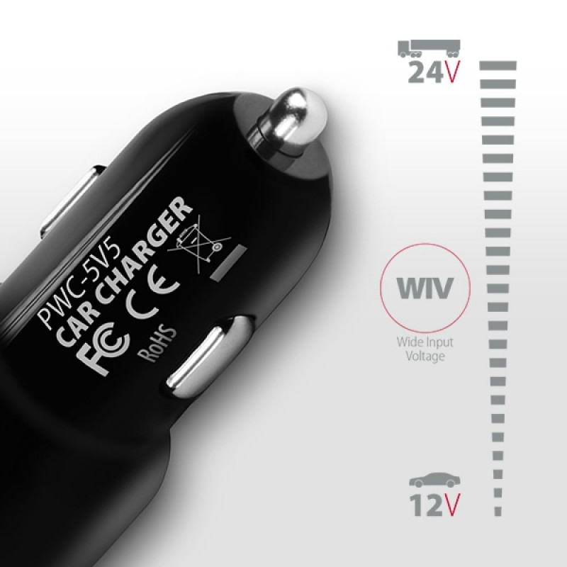 AXAGON kahe USB autolaadija, 24W | PWC-5V5