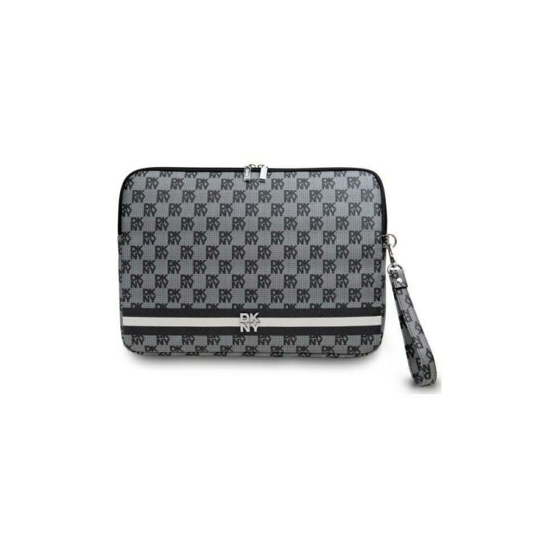 DKNY Sleeve Checkered Pattern Printed Stripes 16" Laptop Case - Black