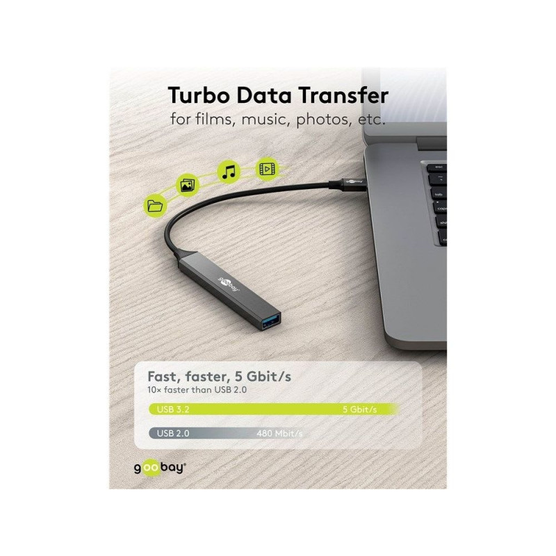 USB jagaja GOOBAY USB-A - 1 x USB-C / 3 x USB - A (USB3.2)
