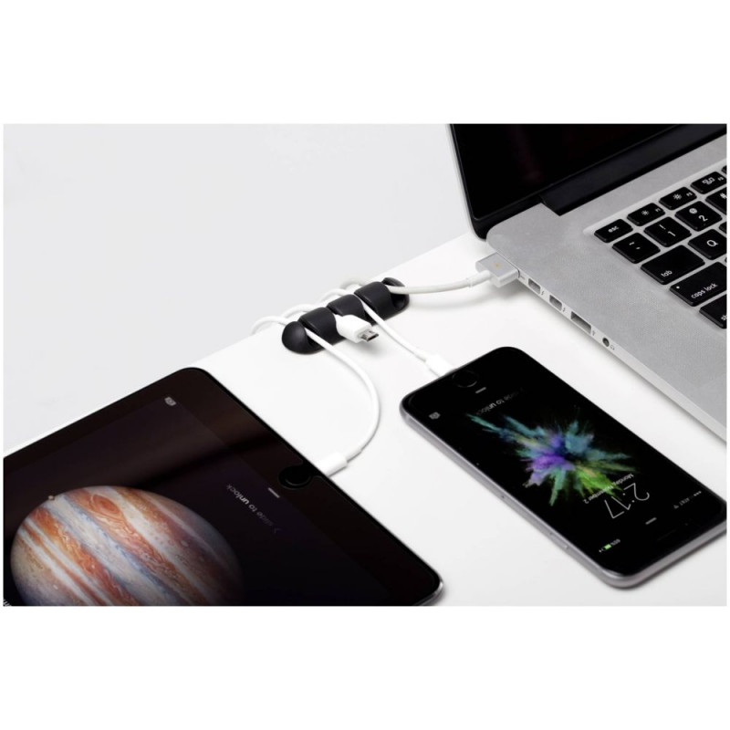 - Hoiab kuni neli kaablit tasapindade küljes, et need ei libiseks laua või öökapi alla