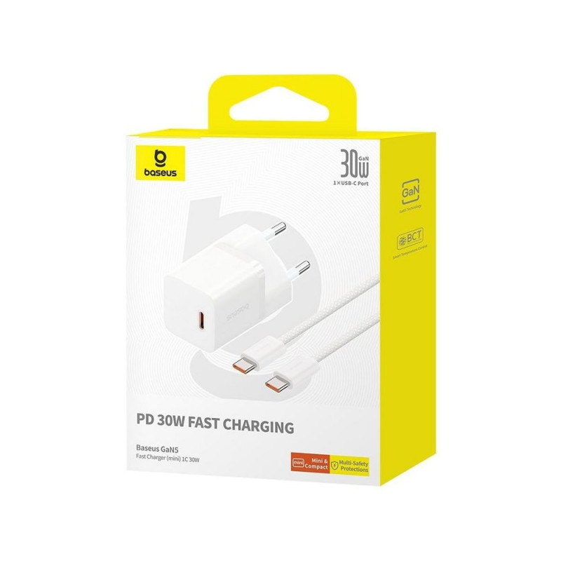 Charger - Baseus 30W GaN5 Mini USB-C Mains Charger with Cable White