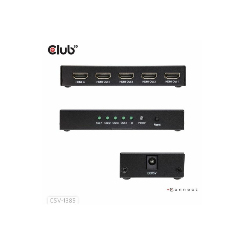 | Product Description | Club 3D CSV-1385 - video/audio splitter - 1-to-4, 4K120Hz - 4 ports |