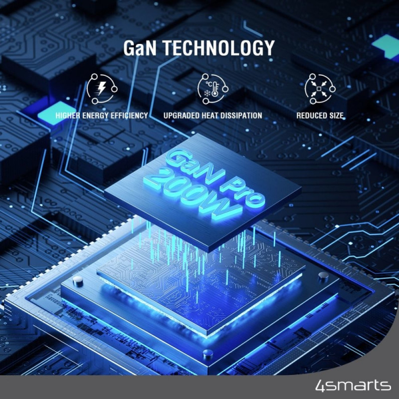Tehnilised andmed- Mudel: 4smarts Ladegert GaN Flex Pro 200W 4 USB-C