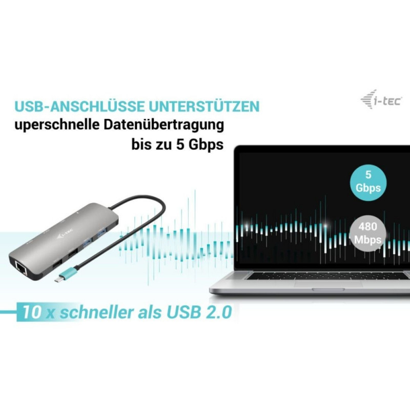 "i-tec USB-C Metal Nano 2x Display dokkimisjaam + Power Delivery 100 W. Edastustehnoloogia: juhtmega, host-liides: USB 3.2 Gen 1 (3.1 Gen 1) Type-C, USB-toitevarustus kuni: 100 W. Ethernet LAN andmeedastuskiirused: 10, 100, 1000 Mbit/s. Toote värvus: hõbedane, andmeedastuskiirus: 5 Gbit/s, maksimaalne värskendussagedus: 120 Hz. USB-kaabli pikkus: 0,3 m. Toetatud operatsioonisüsteemid: Android, ChromeOS."