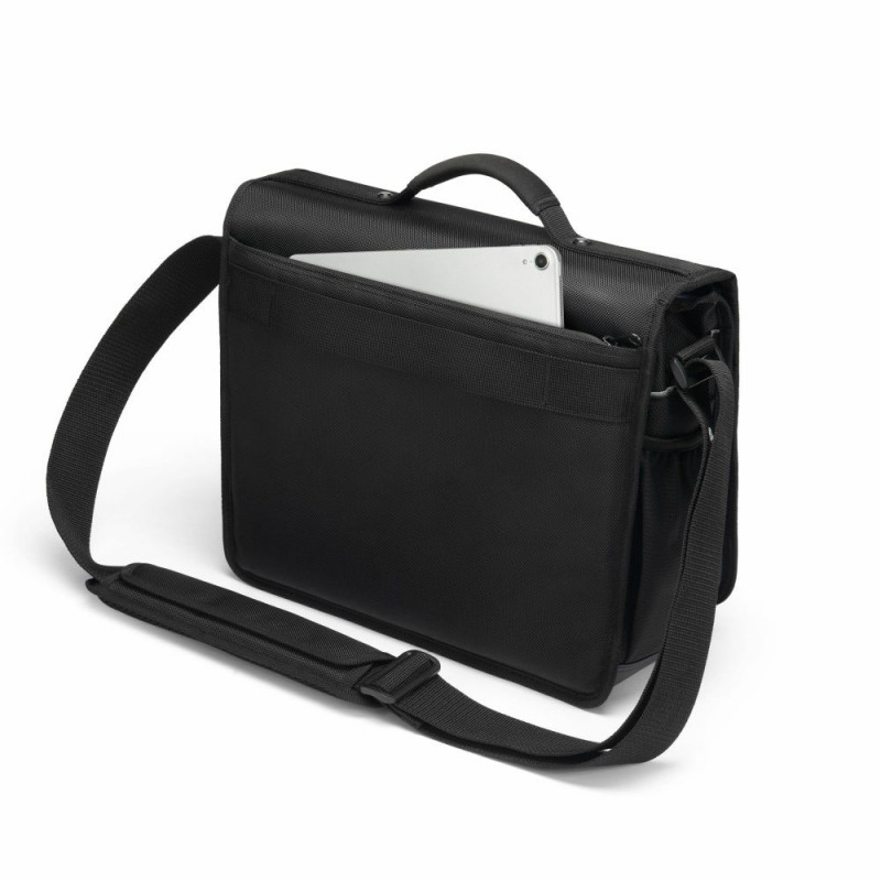 DICOTA P20471-16. Soovitatav sugu: Unisex, käekoti/õlakoti tüüp: Messenger-kott, kinnitusviis: klapiga kinnitus, takjakinnitus. Toote põhivärv: must, valge, värvus: ühevärviline, rihma värv: must. Materjal: taaskasutatud polüetüleentereftalaat (rPET), termoplastiline polüuretaan (TPU). Laius: 300 mm, sügavus: 380 mm, kõrgus: 125 mm.