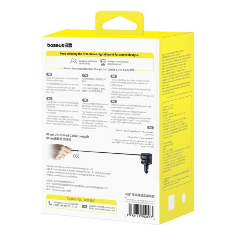 Baseus PD car charger 1x USB-C + USB-A port 90W black