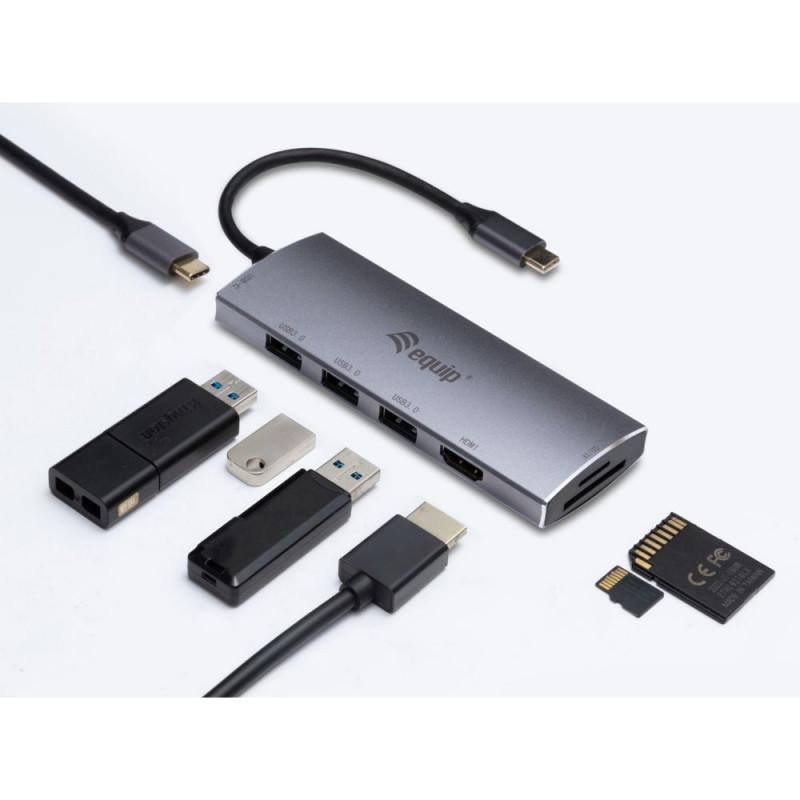 "Equip Dock USB-C->HDMI.3xUSB3.0.SD.TF.60WPD 15cm si"
