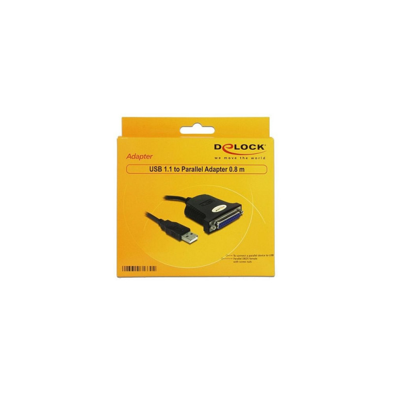 DeLOCK USB 1.1 paralleeladapter. Ühendus 1: USB A, Ühendus 2: DB25, Kaabli pikkus: 0,8 m
