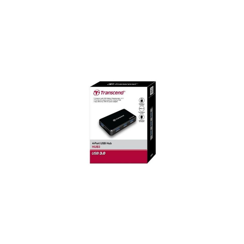 Ideal for use with Ultrabooks and thin-and-light laptops, Transcend's HUB3 transforms a single USB 3.1 Gen 1 port into four, instantly expanding the number of USB 3.1 Gen 1 devices you can connect to your computer at the same time. With the included power adapter, the HUB3 can supply high output currents of up to 2A via its dedicated fast charging port. This allows the Apple iPad to charge much quicker than using a standard USB port.Transcend HUB3. Hub interfaces: USB 3.2 Gen 1 (3.1 Gen 1) Type-A. Product colour: Black, Certification: CE/FCC/BSMI/KC/RCM/EAC. Input voltage: 5 - 12 V. Windows operating systems supported: Windows 10, Windows 7, Windows 8, Mac operating systems supported: Mac OS X 10.2 Jaguar, Linux operating systems supported: Kernel 2.6.31. Width: 49.5 mm, Depth: 15 mm, Height: 78.6 mm