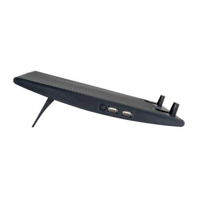 A powerful cooling pad with a range of useful features for keeping notebooks safe and comfortable. USB powered so it doesn’t require a power socket, the cooling pad features 2 fans and a power switch to control and maintain the optimum temperature, ensuring low power consumption via your laptop's USB port.<br>The pad features two USB ports, one for connecting to a device to power the cooling pad, and one extra port.<br>The cooling pad features an anti-slip design to make sure the device remains centrally located on the pad.<br>This is a powerful and versatile cooling pad to enhance any mobile workstation.Conceptronic THANA Notebook Cooling Pad, Fits up to 17", 2-Fan. Maximum screen size: 43.2 cm (17"), Number of built-in cooling fans: 2 pc(s), Fan diameter: 12.5 cm. Product colour: Black, Material: Iron, Plastic, Illumination colour: Blue. Host interface: USB. Power source type: USB, Input voltage: 5 V. Width: 380 mm, Depth: 260 mm, Height: 23 mm