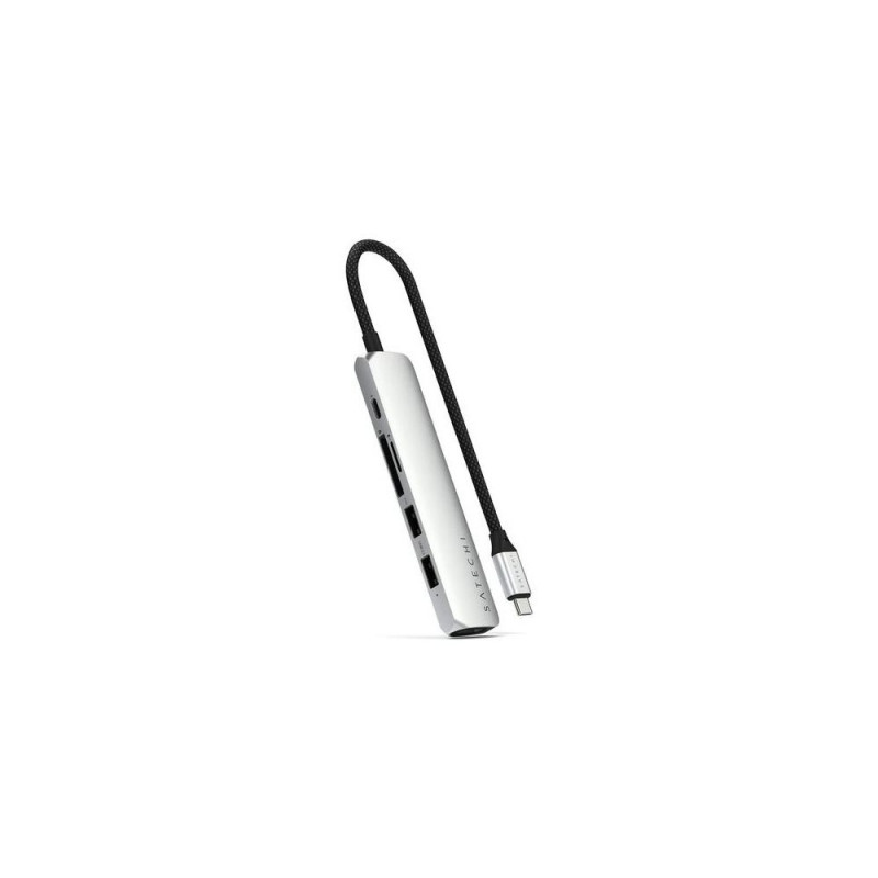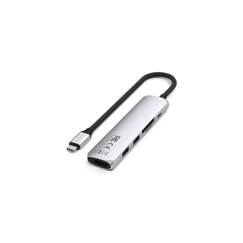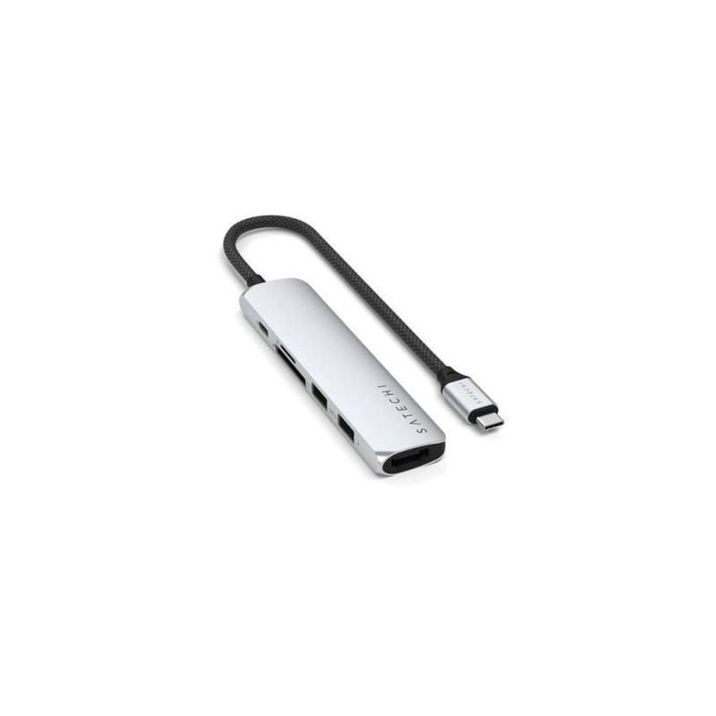 Introducing the Satechi 6-in-1 USB-C Slim Multiport Adapter in Silver, designed to expand your laptop's capabilities without sacrificing style. This sleek, multi-functional adapter offers the perfect blend of convenience and performance, making it a must-have for tech-savvy professionals on the go.<br><br><b>6-in-1 functionality</b><br>The Satechi 6-in-1 USB-C Slim Multiport Adapter turns your single USB-C port into six versatile ports. This multiport adapter includes 4K HDMI, USB-C PD charging, Gigabit Ethernet, and three USB-A ports, providing all the necessary connectivity options.<br><br><b>4K HDMI output</b><br>Experience crystal clear video quality with the 4K@60Hz HDMI output, perfect for connecting your laptop to external monitors or projectors. Whether delivering a conference presentation or enjoying a movie at home, the Satechi adapter ensures stunning visuals every time.<br><br><b>High-speed data transfer</b><br>Achieve efficient productivity with high-speed data transfer capabilities. The three USB-A ports offer fast file transfers and seamless connectivity for your USB devices, ensuring you get more done in less time.<br><br><b>Gigabit Ethernet connectivity</b><br>Stay connected with stable and speedy internet access through the Gigabit Ethernet port. Experience reliable online access in meeting rooms, at home, or on the go without relying on unpredictable Wi-Fi networks.<br><br><b>Slim and portable design</b><br>Featuring a sleek, Silver aluminum finish, the Satechi adapter is as stylish as it is functional. Its slim and lightweight design makes it easy to carry in your laptop bag, ensuring you have robust connectivity wherever you are.Satechi ST-P6SS. Host interface: USB Type-C, Hub interfaces: HDMI, RJ-45, USB 2.0 Type-A, USB 3.2 Gen 2 (3.1 Gen 2) Type-A, USB Type-C, Compatible memory cards: MicroSD (TransFlash), SD. Data transfer rate: 10000 Mbit/s, Supported graphics resolutions: 4096 x 2160, Supported video modes: 2160p. Ethernet interface type: Gigabit Ethernet, Ethernet LAN data rates: 10,100,1000 Mbit/s. Power supply type: USB. Other operating systems supported: ChromeOS, iOS
