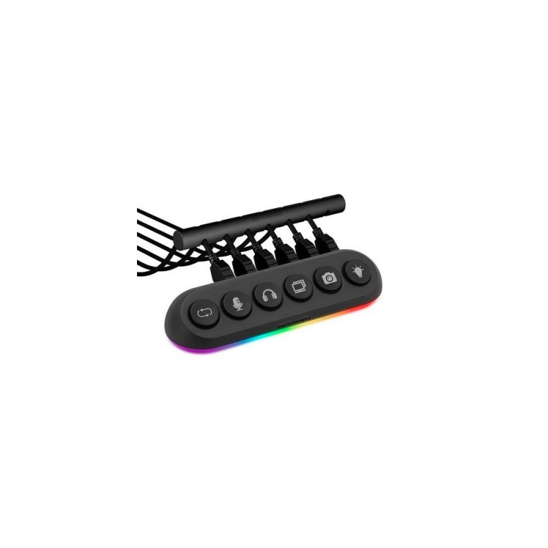 5-Port RGB USB Hub<br><br>USB Hub with 5 USB ports and individual power buttons for each USB slot with LED indicators for connected devices. Choose from 7 swappable keycaps to customize your hub to fit your unique preferences and style. RGB lighting modes that can be controlled via RGB control button add a stylish flair to your setup.<br><br><b>Organized and Connected</b><br>With 4 USB 3.0 ports and one 2.0A USB fast charge port, you can connect multiple devices simultaneously.<br>Set up everything you need for your stream to function smoothly.<br><br><b>Personalize With 7 Swappable Keycaps</b><br>Made with quality and durability in mind, backlit compatible keycaps allow LED indicator lights to shine through. Choose from 7 swappable keycaps to customize your USB Hub to fit your unique preference and style.<br><br><b>Stylish RGB Lighting Modes</b><br>Give your setup a unique flair with stylish and dynamic RGB lighting modes. Cycle between preset RGB and LED lighting modes to fit your desired mood and vibe.<br><br><b>Individual Power Buttons</b><br>Each USB port comes with individual power buttons to turn on or off at will. LED Indicators for connected devices quickly let you know whether or not a port is turned on.<br><br><b>High Power Delivery</b><br>Plug in directly to a power source for high power devices such as external hard drives or lights. Featuring a 12V/2A, 24W power adapter with high power delivery, HUB DECK 5 ensures that multiple devices can be connected simultaneously without losing power or connectivity.<br><br><b>Fast Charging</b><br>2.0A Fast charging USB port built into the hub ensures that your smartphone or other devices remain fully charged.<br><br><b>Efficient Cable Management</b><br>Comes with a flexible cable holder with built-in cable organizer clips to keep your cables neat, tidy, and secure.<br><br><b>Plug and Play</b><br>No need to install any drivers or software. Simply plug in your HUB right out of the box and you’re ready to go. The USB 3.0 connector is designed with the standard UVC/UVA protocol so it can be used with nearly any device.<br><br><br>Streamplify HUB DECK 5. Hub interfaces: USB 2.0, USB 3.0. Product colour: Black, USB Power Delivery up to: 24 W, Cable length: 1.8 m. Input voltage: 12 V, Input current: 2 A. Windows operating systems supported: Windows 10, Windows 7, Windows 8, Windows XP