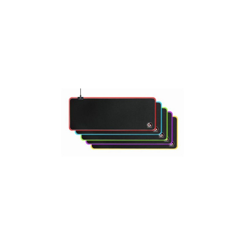 Heavy-duty surface fabric material for optimal accuracy and smooth control<br> Multi-color RGB LED illuminated edges with 10 light effect settings<br> Optimised for use with optical and laser gaming mice<br> Durable rubber anti-slip bottomGembird MP-GAMELED-L. Width: 800 mm, Depth: 300 mm. Product colour: Black, Surface coloration: Monochromatic, Material: Fabric, Foam, Rubber, USB powered, Backlight colour: Multicolour, Non-slip base, Gaming mouse pad