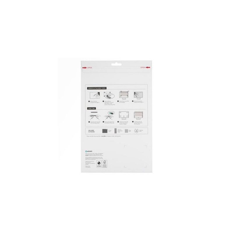 Protect your screen and your own privacy. Protect your company – both on the move and in the office – by keeping login credentials, essential personal and confidential data and information unexposed to unwanted onlookers.<br>← ←<br>With a Gearlab privacy filter, you get crisp and clear image clarity when you are in front of the screen, while people on either side cannot see anything on your display.<br>← ←<br>As an additional benefit, a privacy filter protects the sensitive screen glass surface from scratches and damage, and like on a touchscreen, your fingers slide and swipe easily across the surface.eSTUFF GLBB14301188. Maximum screen size: 35.6 cm (14"). Aspect ratio: 16:10. Suitable for: Laptop, Type: Frameless display privacy filter. Surface finish: Glossy / Matt. Weight: 90 g