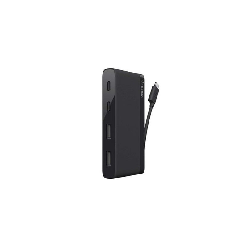 <b>PORTS FOR PORTABILITY</b><br>Connect your new USB-C laptop, to multiple USB devices with this comprehensive port expansion hub. Two USB-C ports connect new devices, while two USB-A ports allow easy connection for existing devices, such as a hard drive, mouse, keyboard or printer. Small and compact, with a tethered USB-C cable, the hub is an ultimately portable and comprehensive peripherals solution.<br><br><b>MADE FOR:</b><br>- USB-C compatible laptops<br>- USB-A and USB-C compatible devices<br><br><b>ALL DEVICES WELCOME</b><br>Connect all your peripherals to your new USB-C device with one compact hub. Two USB-A ports connect existing devices, and two dedicated USB-C ports for newer peripherals. Existing or new, your keyboard, mouse, flash drive or cable to sync other devices, will all find a home with this compact hub.<br><br><b>5 GBPS SPEEDS</b><br>Connect your devices to the hub to sync, and enjoy data transfer of 5 Gbps. That's fast by any standard, let alone a multi-tasking hub that's the size of a pack of playing cards.<br><br><b>CONNECT ANYWHERE</b><br>Small, compact and lightweight, the 4-Port Mini Hub can slip into your laptop bag and go wherever you go. Plus, the tethered cable that connects the hub to your USB-C laptop folds away inside the hub for neat storage.Belkin F4U090btBLK. Hub interfaces: USB 3.0 (3.1 Gen 1) Type-C. Data transfer rate: 5000 Mbit/s, Product colour: Black, Compatible products: MacBook. Power source type: USB. Cables included: USB. Cable colour: Black