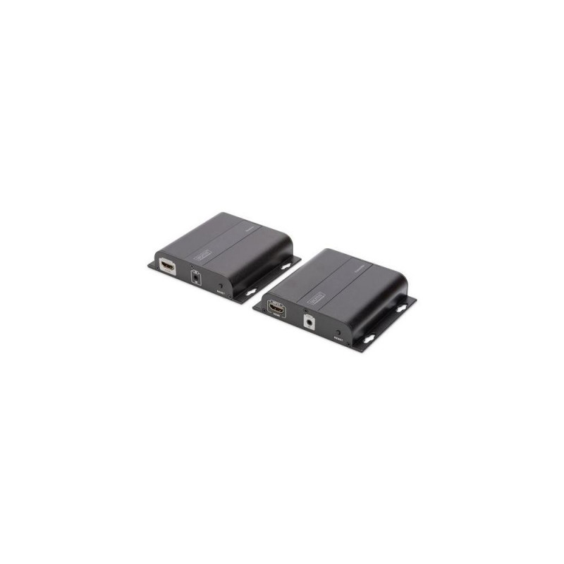 Use additional receiver units (DS-55123) and your existing network infrastructure to display video content on up to 253 screens (IP connection)<br><br>- Use additional receiver units (DS-55123) and your existing network infrastructure to display your video content on up to 253 screens (IP connection)<br>- Extends 4K video content up to 120 m with a CAT 6 cable (point-to-point connection)<br>- Extension of the signal (unlimited distance) via the existing local network infrastructure (IP connection)<br>- Supports 4K (30Hz), 3840x2160p resolution<br>- Supports CAT 5, CAT 5e, CAT 6 and CAT 7 network cables<br>- HDMI bandwidth: 10.2 Gbit / s (max.)<br>- Supports HDCP 1.4<br><br>The 4K HDMI Extender Set (DS-55122) is a high-performance video distribution system consisting of a transmitter/receiver unit. It extends 4K HDMI signals up to 120 m via a CAT6 network cable (point-to-point connection). In addition, you can use a network switch and the individual receiver units (DS-55123) to distribute your video content to up to 253 displays via the existing network (IP connection). The additional integrated unidirectional IR interface enables remote control of the input source.Digitus 4K HDMI extender via CAT / IP (set). Type: AV transmitter & receiver, Maximum resolution: 3840 x 2160 pixels, Cable types supported: Cat5, Cat5e, Cat6. Connectivity technology: Wired. Operating voltage (transmitter): 5 V, Output current: 2 A, Operating voltage (receiver): 5 V. Width: 107.3 mm, Depth: 94 mm, Height: 23.7 mm. Package width: 199 mm, Package depth: 149 mm, Package height: 80 mm